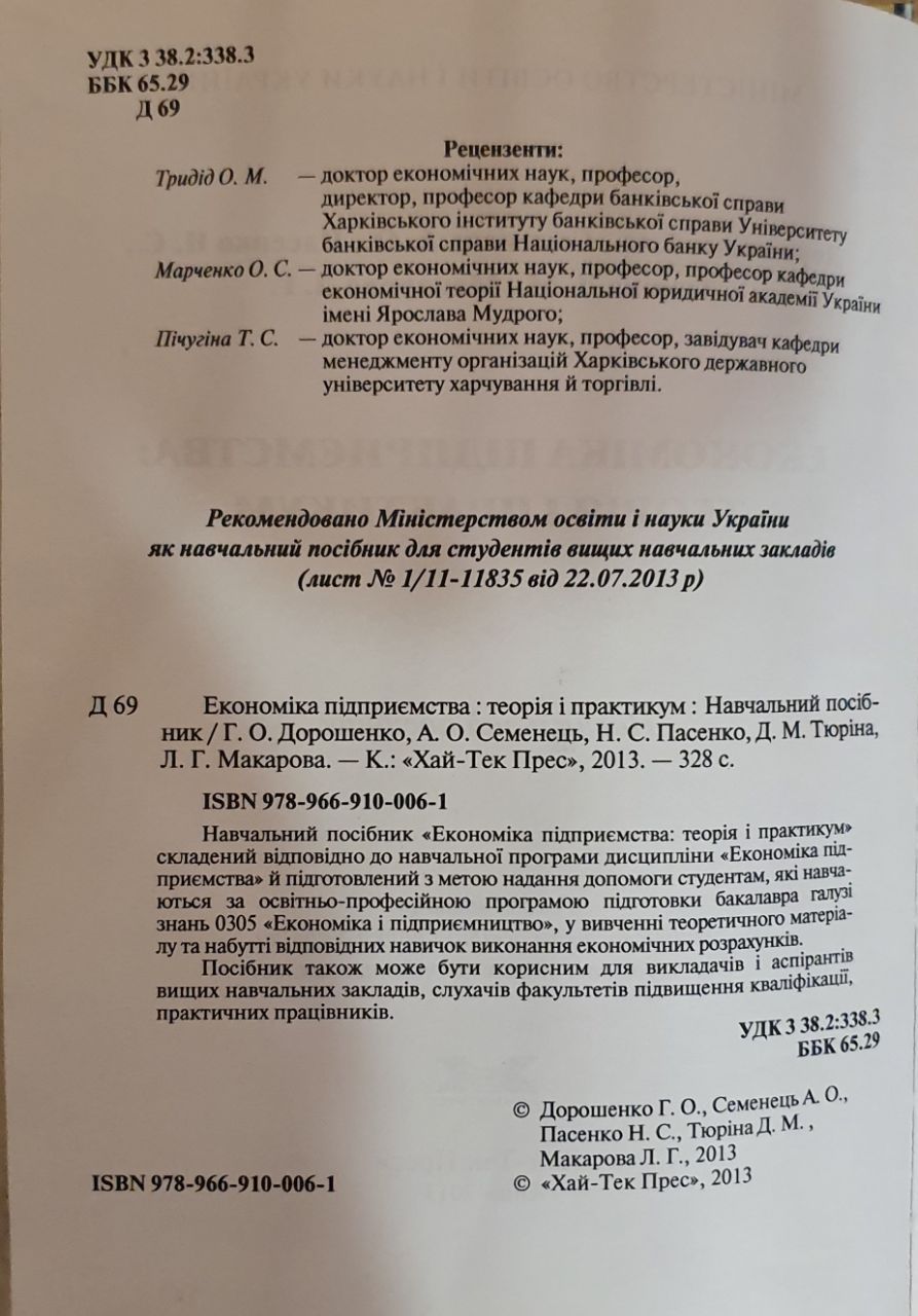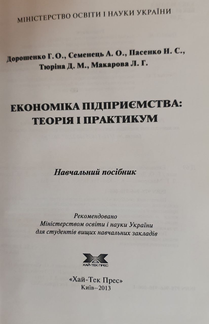 http://repositsc.nuczu.edu.ua/handle/123456789/25539| Назва: | Економіка підприємства: теорія і практикум : навч. посіб. / Г. О. Дорошенко, А. О. Семенець, Н. С. Пасенко, Д. М. Тюріна, Л. Г. Макарова. – К. : Хай-Тек Прес, 2013. – 328 с. – ISBN 978-966-910-006-1. |