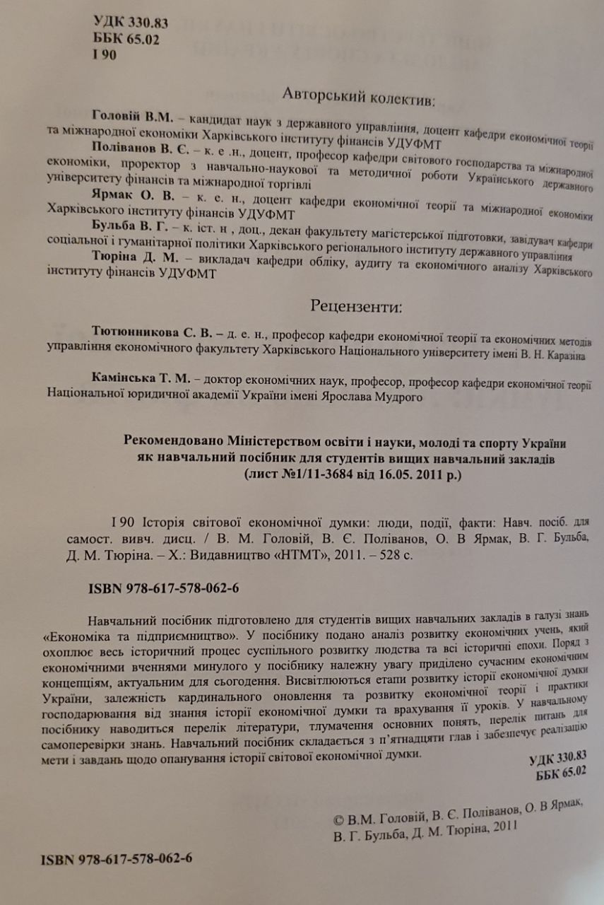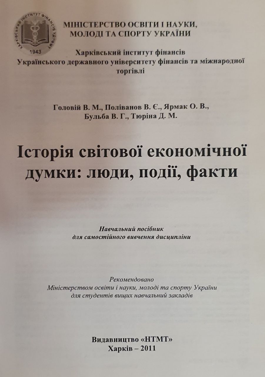 http://repositsc.nuczu.edu.ua/handle/123456789/25542| Назва: | Історія світової економічної думки: люди, події, факти : навч. посіб. для самост. вивч. дисципліни / В. М. Головій, В. Є. Поліванов, О. В. Ярмак, В. Г. Бульба, Д. М. Тюріна. – Х. : Вид-во «НТМТ», 2011. – 528 с. – ISBN 978-617-578-062-6 |