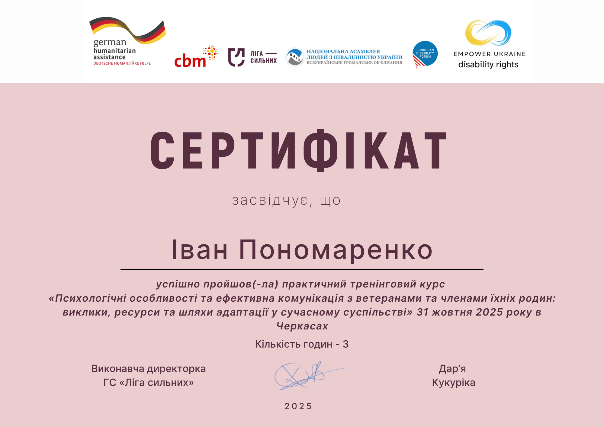 Назва: Практичний тренінговий курс «Психологічні особливості та ефективна комунікація з ветеранами та членами їхніх родин: виклики, ресурси та шляхи адаптації у сучасному суспільстві»
