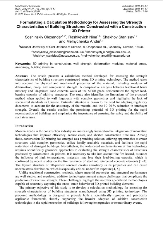 http://repositsc.nuczu.edu.ua/handle/123456789/27265| Назва: | Formulating a Calculation Methodology for Assessing the Strength Characteristics of Building Structures Constructed with a Construction 3D Printer |