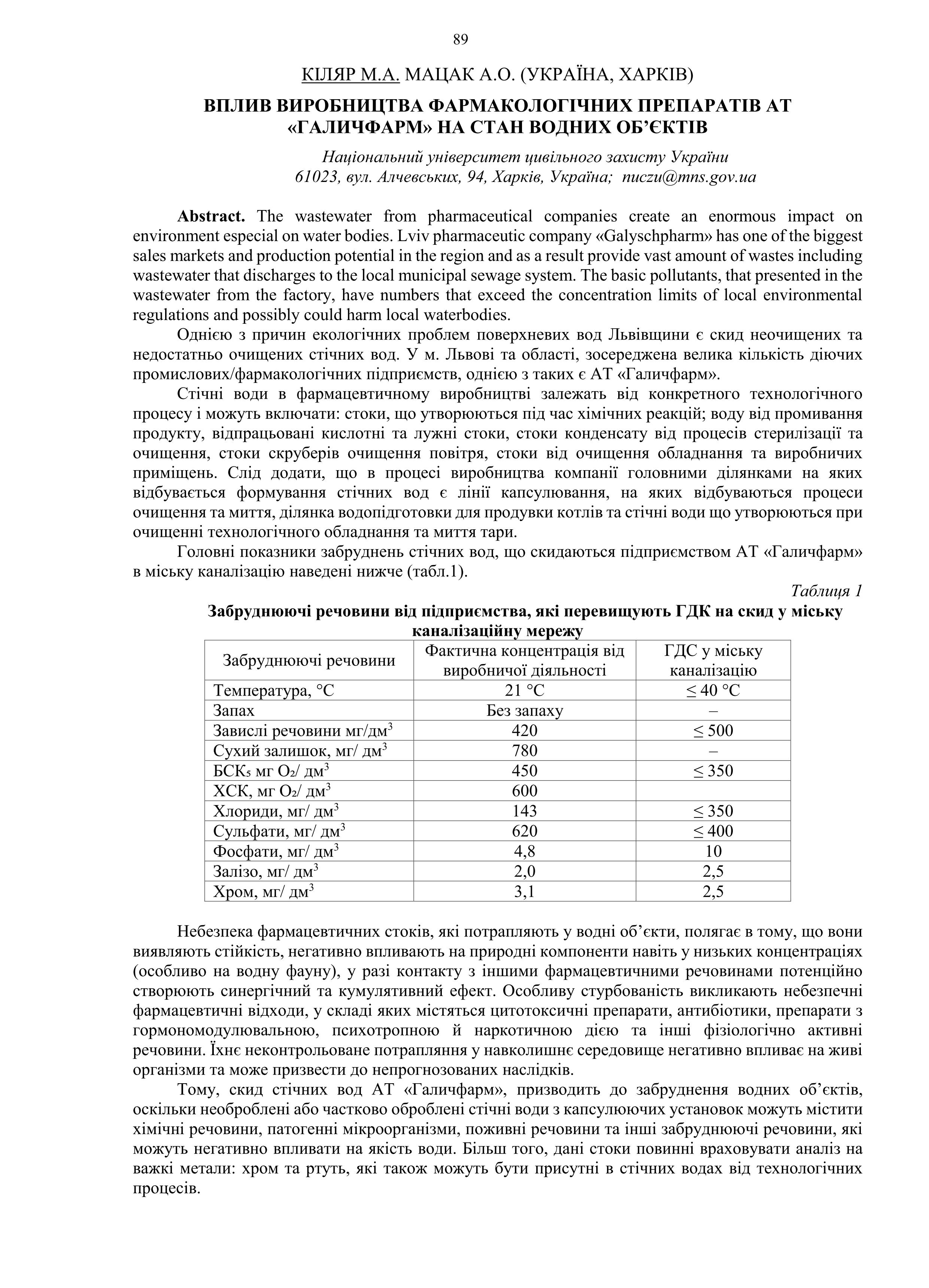 http://repositsc.nuczu.edu.ua/handle/123456789/27359| Назва: | Вплив виробництва фармакологічних препаратів АТ «Галичфарм» на стан водних об’єктів. |