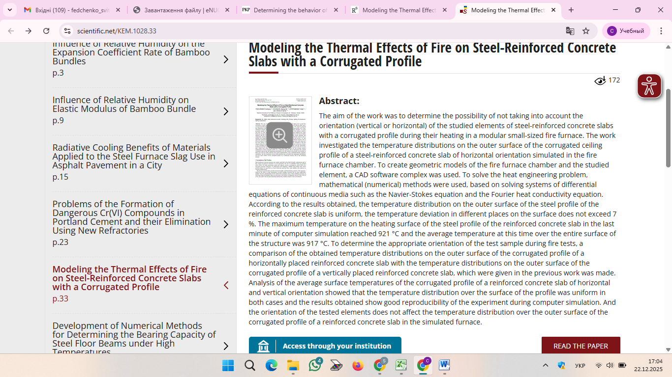 http://repositsc.nuczu.edu.ua/handle/123456789/27580| Назва: | Modeling the Thermal Effects of Fire on Steel-Reinforced Concrete Slabs with a Corrugated Profile |