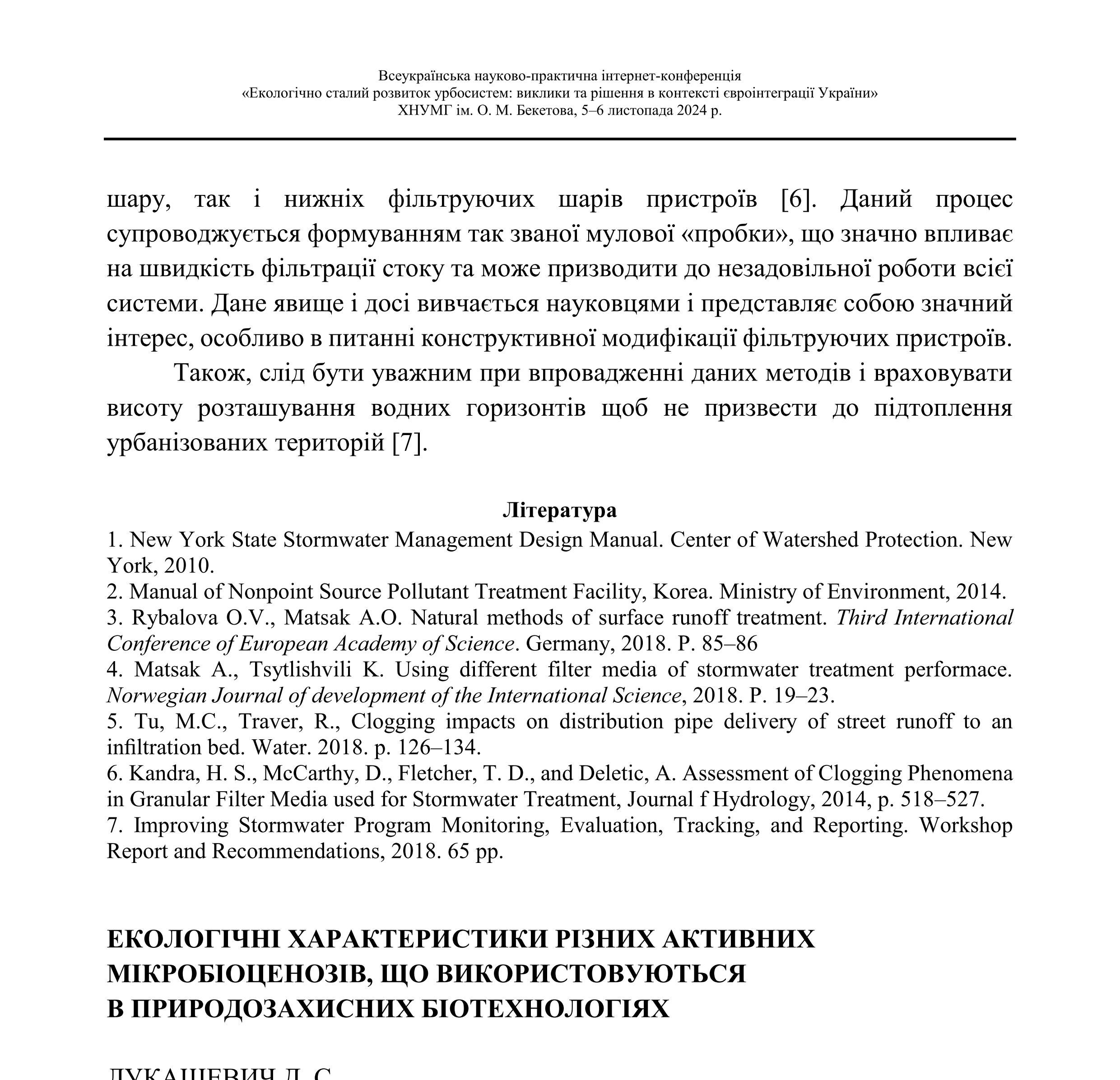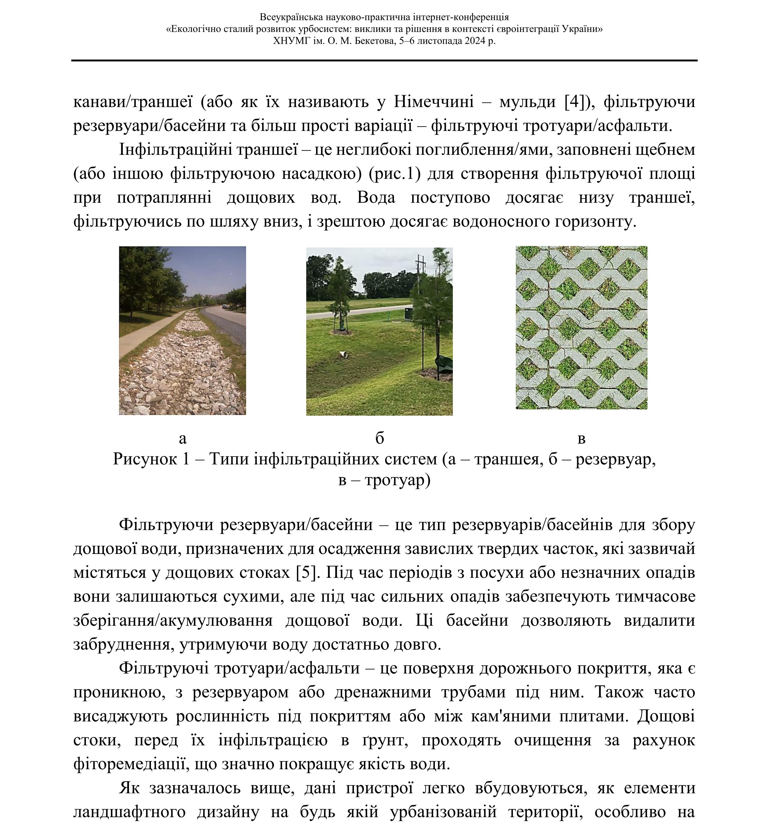 | Опис: | Інфільтраційні системи очищення дощового стоку на щільнозабудованих урбанізованих територіях. |